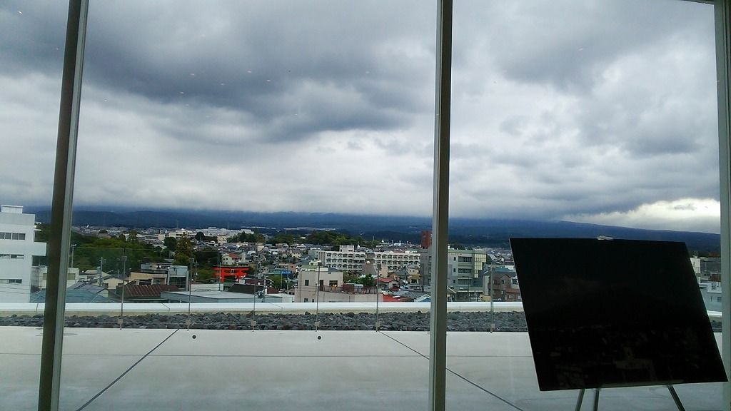 晴れていれば大きい富士山が見えるはずの展望ホールから