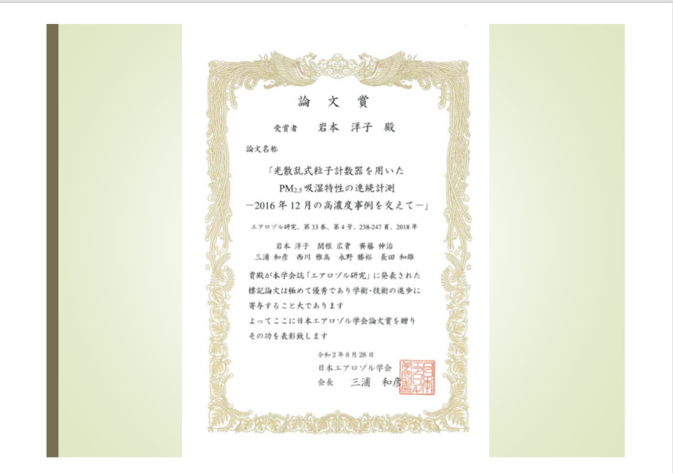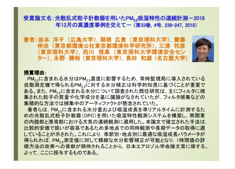 本賞はエアロゾル研究・技術の新たなる発展を願う、一篤志家によって設立され、その後、企業からの寄付金によって運営されている。「特別セッション」はエアロゾルに関する萌芽的な研究、問題点の指摘、新しい分野の開拓、未来志向の夢のある話題等を、遊びとゆとりの気持ちをもって発表する場であり、この趣旨に沿った優れた発表に審査の力点が置かれる。