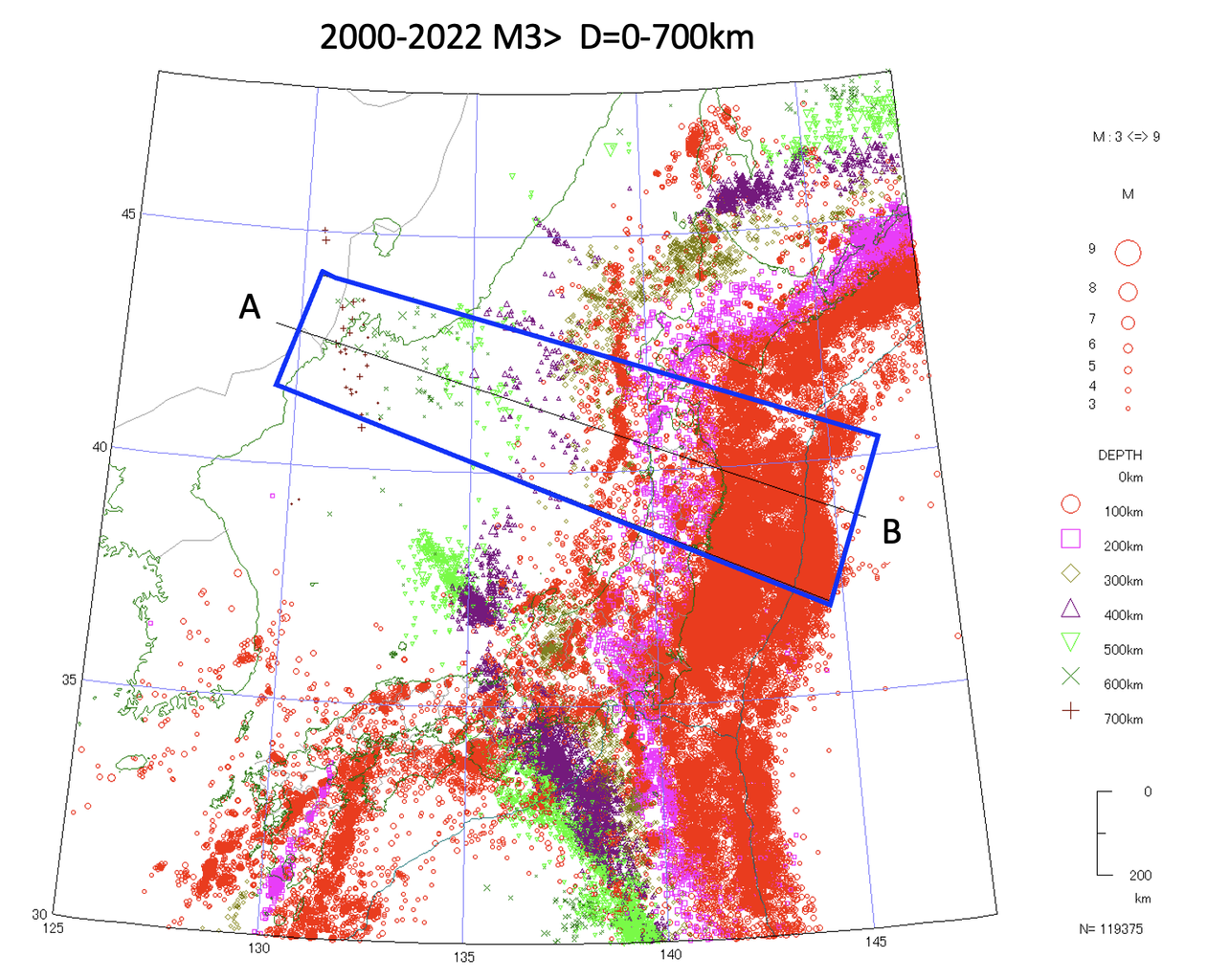 前回の地震観測網のブログ(23-4)で、地震活動そのものが近年活発になったのでは無いという事をお伝えしましたが、今回は地震の空間分布について解説したいと思います。
