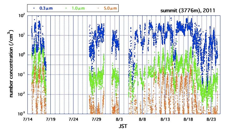By analyzing samples we collected last year, we could identify chemical compositions and size distributions of various organic compounds over Mt.Fuji, and the results also suggested that many organic compounds are transported from the planetary boundary layer to the summit.