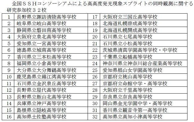 高高度発光現象の観測を行っているのは、富士山頂だけではありません。実は北海道から鹿児島県まで全国の32の高校(SSH:スーパサイエンハイスクール)でも同時観測をしており、鴨川研究室では夏季に富士山測候所で、また冬季にはこれらの高校生と連携して研究をしています。
