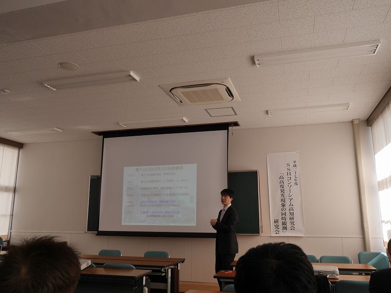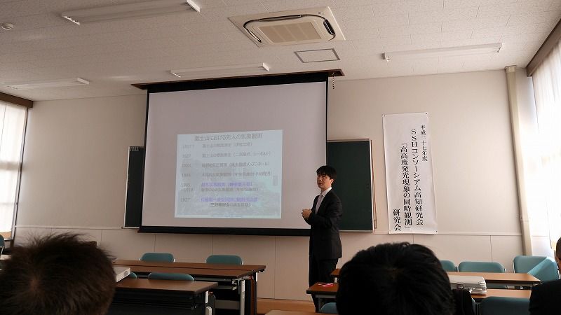 2月20日~21日にかけて、高知工科大学など高知県内3箇所を会場に「高高度発光現象の同時観測」に関する平成27年度研究発表会・交流会があり、東京学芸大学准教授でありNPO富士山測候所を活用する会理事の鴨川仁先生が「富士山頂での雷研究~雲内計測から高度放電発光現象観測まで」と題して講演を行いました。
