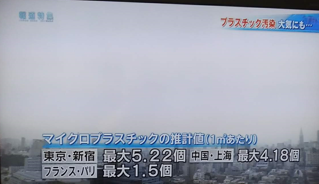 新宿の大気中に含まれていたプラスチック(PET:ポリエチレンテレフタレート)
