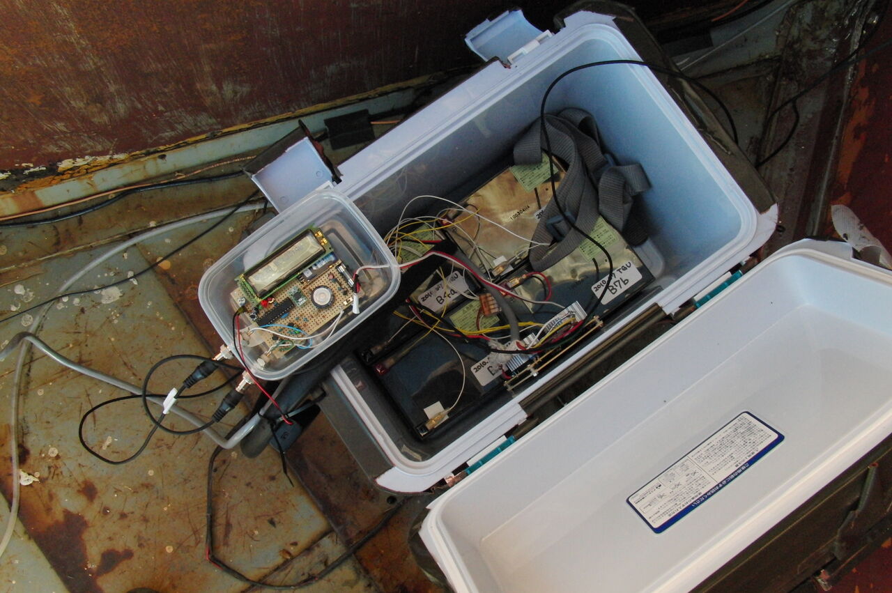 2010年山頂で越冬観測を目指した雷電波を計測するデータロガー。